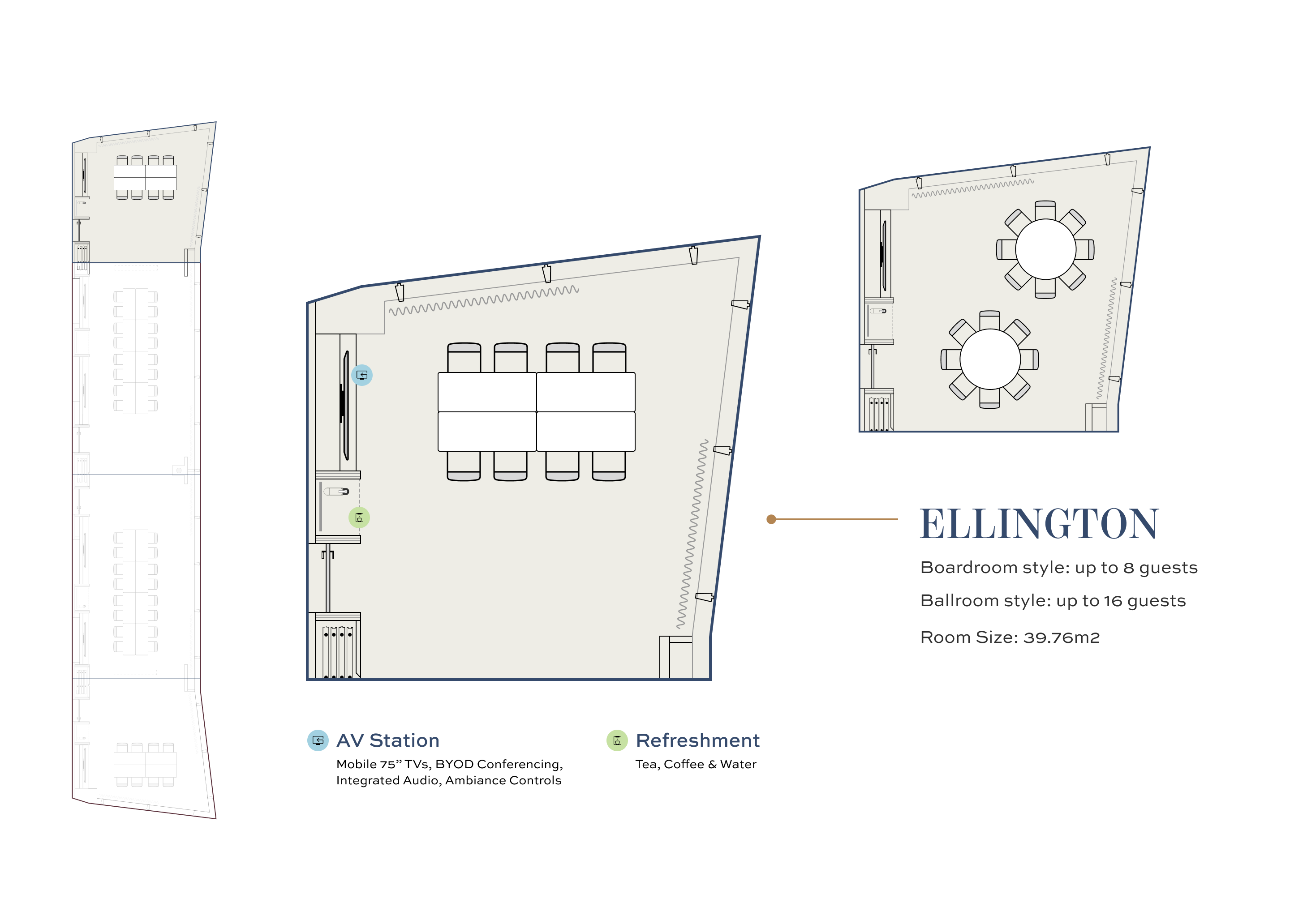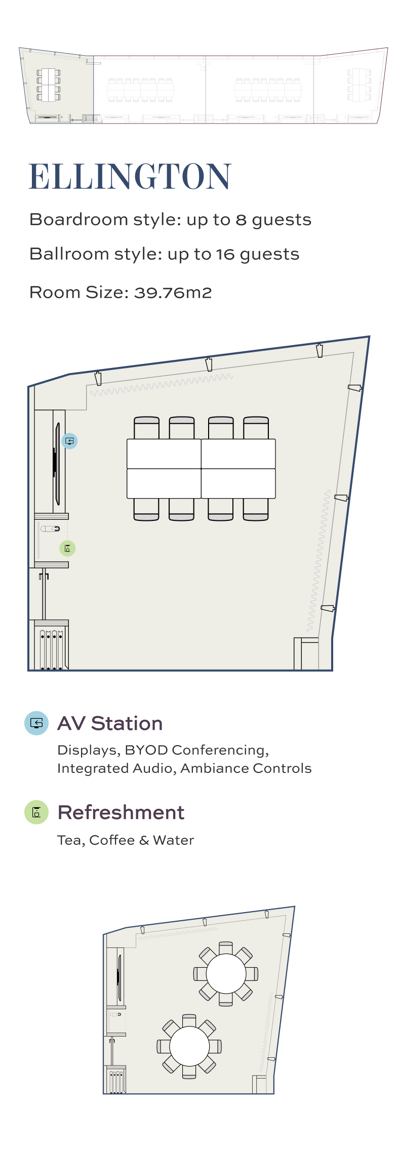 Named in honor of the legendary composer and jazz icon Duke Ellington, this sophisticated space celebrates his spirit of creativity and elegance.