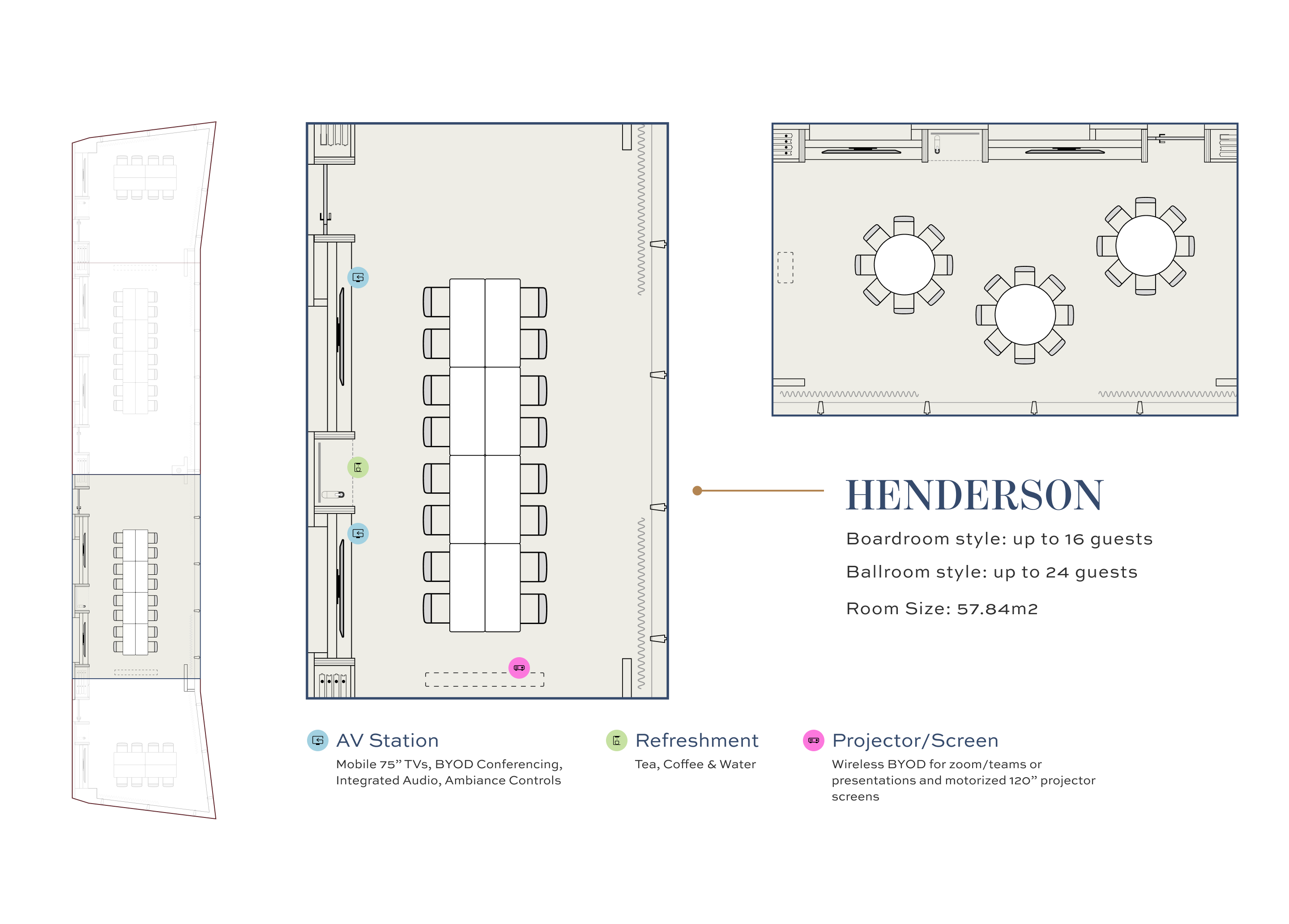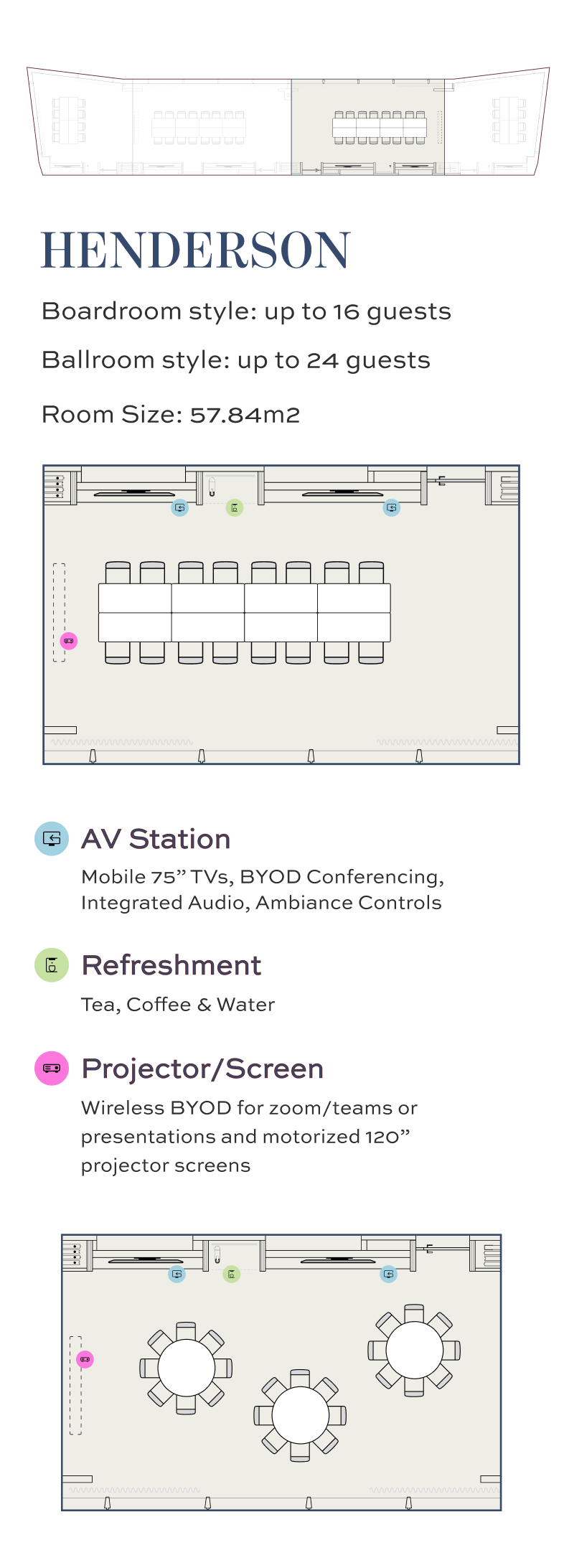 Paying tribute to the influential jazz pioneer and bandleader Fletcher Henderson, our Henderson room commanding space blends energy with adaptability.